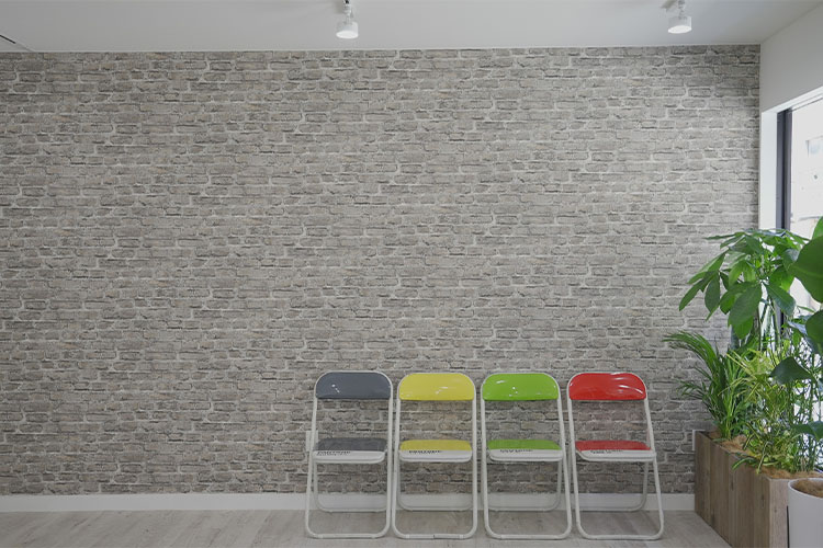 煉瓦風の壁紙が一層おしゃれさを引き立たせます。ライブ配信や、イベント会場、プレスルーム、フォトスタジオとしてお使いいただけます。
